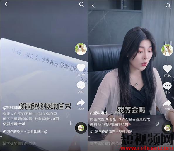 如今,走精致情景劇路線,如塑料姐妹、姜十七、葉公子等賬號,人設、故事性雖強,可看性高,但劇本套路化、內(nèi)容同質(zhì)化現(xiàn)象極為嚴重。