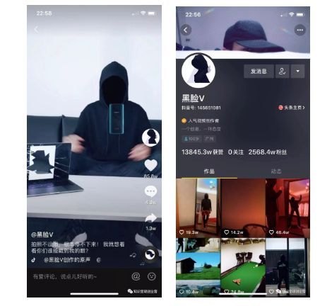 比較典型的是『黑臉V』,目前粉絲2568W, 點(diǎn)贊數(shù)1.3億,廣告費(fèi)用72萬,比較典型的就是他給OPPO Find X做的廣告,加入了自己的創(chuàng)意,單個視頻點(diǎn)贊數(shù)85.8萬,4.3萬條評論,甚至有1.3萬人轉(zhuǎn)發(fā)了這條視頻。