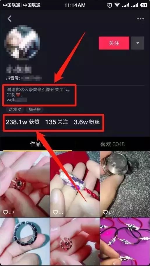 很多大號只是在備注里寫了微博地址。一些帶貨的賬號會直接留下微信號,最典型的就是朋友圈賣貨的微商了,這樣也是為了更好的沉淀到個人微信號方便進(jìn)一步的操作。因?yàn)楝F(xiàn)在朋友圈賣貨真的賣不動了,但是抖音的巨大流量可以給微信帶來一些新鮮的血液,對提升出貨量肯定是有幫助的。
