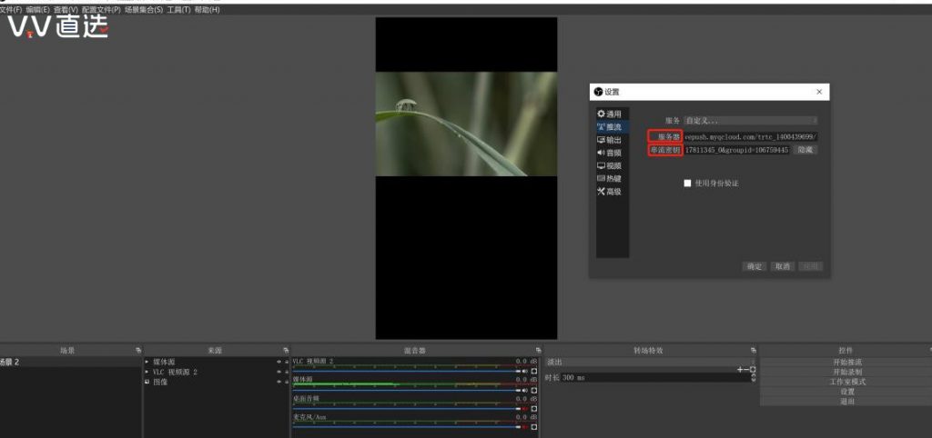 1、推流選項復制粘貼網(wǎng)頁顯示的地址、密鑰到 OBS 軟件里。由于視頻號直播目前只支持豎屏推流,所以在 OBS 里設(shè)置豎屏畫布,將視頻內(nèi)容疊加在畫布上,用戶在手機端即可看到類似橫屏的效果。實測發(fā)現(xiàn),當前豎屏設(shè)置為 4:9 比例,用戶在手機上看到的畫面完整性最高,如 720×1620 或者 1080×2430。