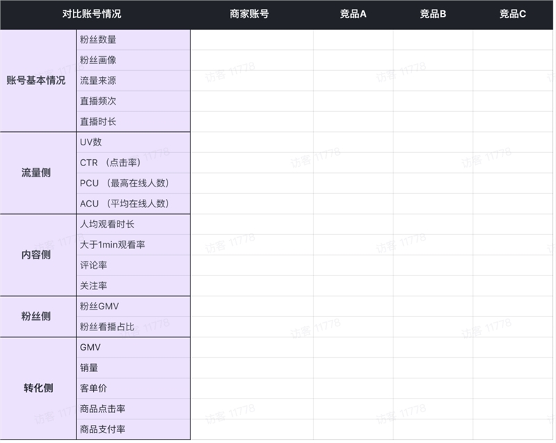 小薇建議達人/商家可以從賬號基本情況,流量側、內(nèi)容側、粉絲測、轉化側這5個方面,來對比自己的賬號和競品賬號的區(qū)別。