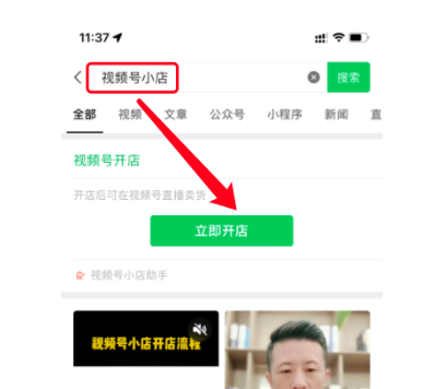 2、手機端地址之一:微信搜一搜搜關鍵詞【視頻號小店】。出來后直接點開店即可,如圖。