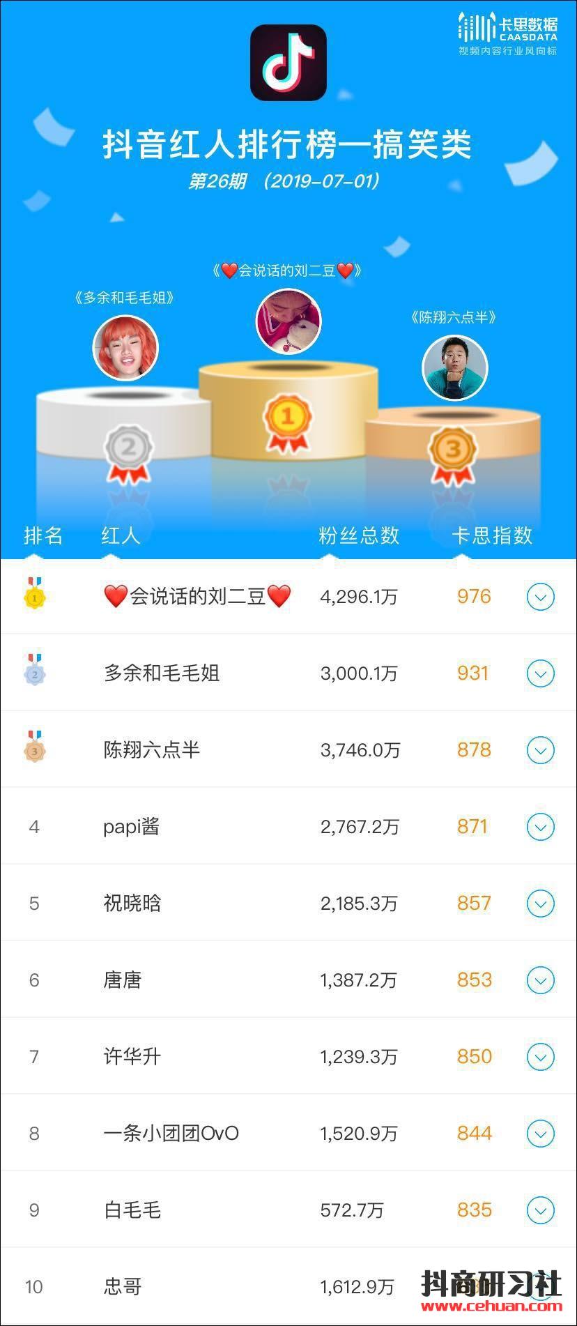▲ 抖音-搞笑榜TOP10第26期