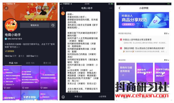 還不知道詳細(xì)開播流程的朋友,也可以關(guān)注@電商小助手 抖音號,@電商小助手是官網(wǎng)唯一指定的抖音購物車教學(xué)平臺,在這里你可以學(xué)習(xí)到: