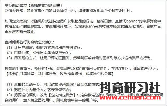 1、抖音內(nèi)部消息:將嚴(yán)格控制直播抽獎行為