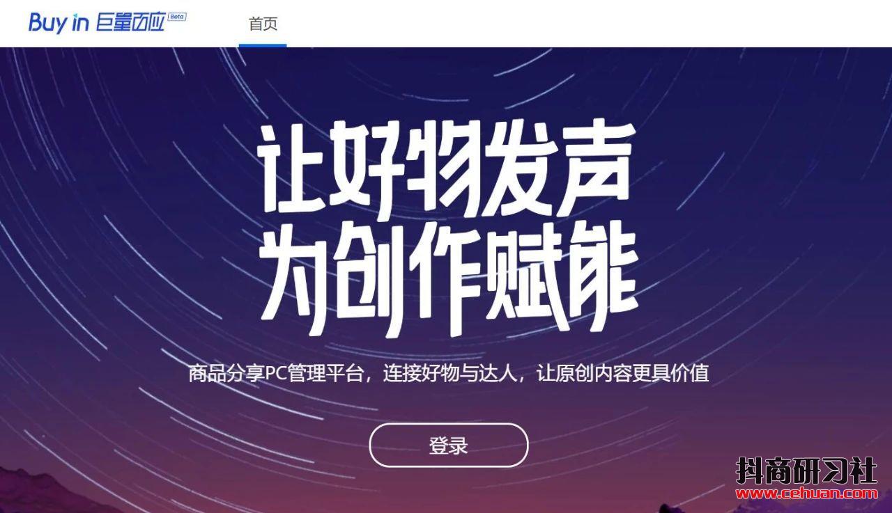 巨量百應(yīng),也叫Buy in,是基于短視頻/直播內(nèi)容分享商品場景,匯聚并連接各作者、商家、機構(gòu)服務(wù)商的綜合商品分享管理平臺。