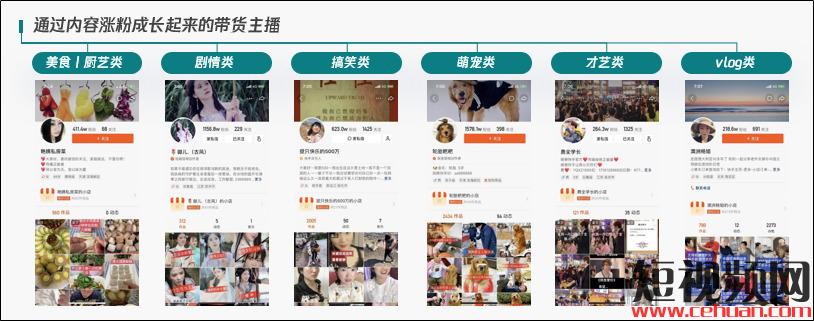 他們一部分是通過內(nèi)容完成前期粉絲的積累,如以美食、搞笑/劇情、vlog、才藝類主播為主,在廣告和打榜收入難以為繼的情況下,開始直播帶貨 。如劇情類達(dá)人御兒(古風(fēng))、Vlog生活記錄類達(dá)人澳洲楊姐等。此外,近期快手早期成長(zhǎng)起來的一些超頭部大號(hào),也開始轉(zhuǎn)型賣貨,如:二驢、小伊伊、王小國(guó)等。