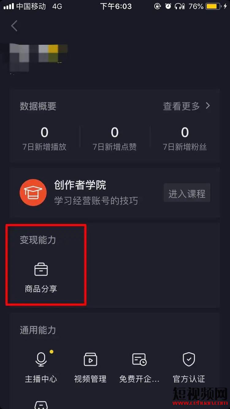 手機端: 打開抖音APP,進入個人主頁頁面【我】,點擊右上角【?】,依次點擊【創(chuàng)作者服務中心】——【商品分享】——【開通小店】,按照要求填寫相關信息,同時按提示上傳身份證證件照片即可。 左右滑動查看更多