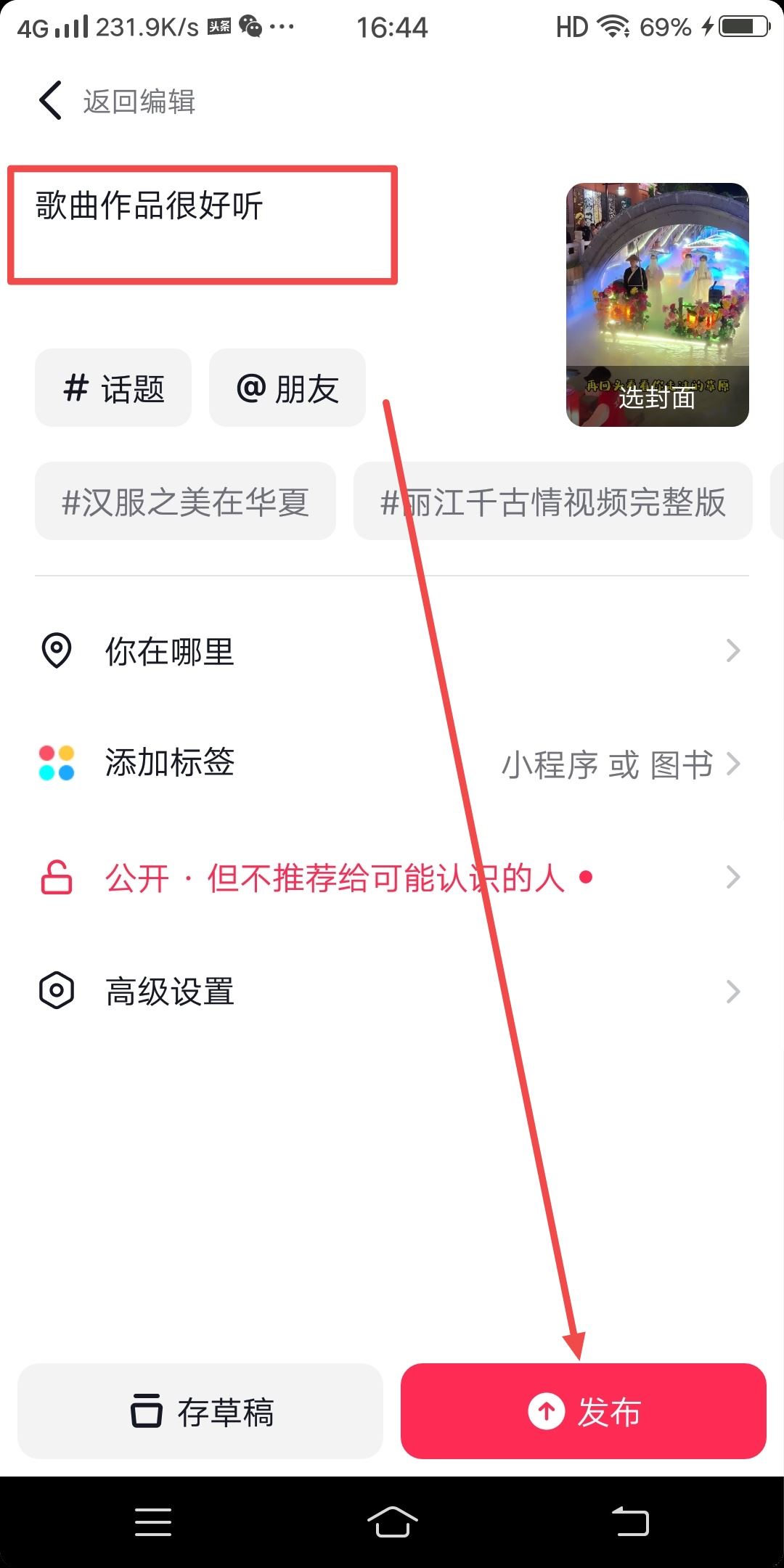 抖音怎么發(fā)歌曲作品? 我很怪但我不壞 2年前 抖音 328抖音怎么發(fā)歌曲作品?回復(fù) 我來回復(fù) xie 評論1.打開抖音,點(diǎn)擊中間的加號,打開相冊2.選擇歌曲視頻打開,點(diǎn)擊下一步,輸入標(biāo)題點(diǎn)擊發(fā)布3.可成功發(fā)表歌曲作品 贊同 2年前 0條評論請 登錄 或者 注冊 后回復(fù)。